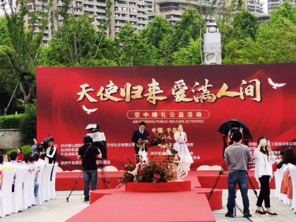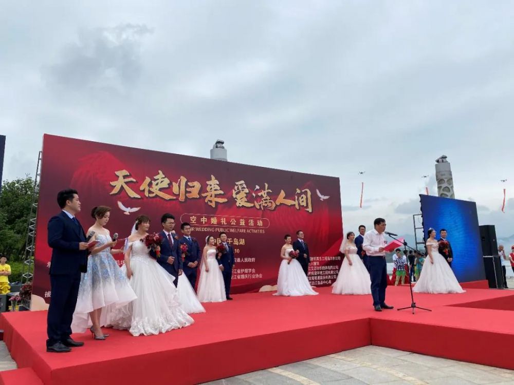 这是“天使归来,爱满人间”空中婚礼公益活动现场