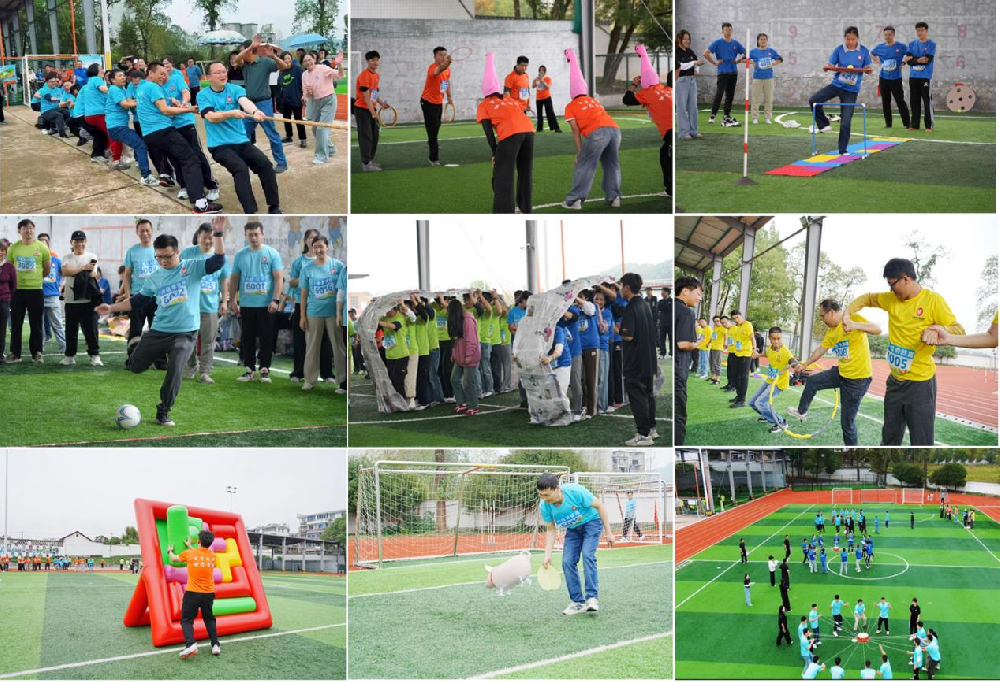 运动会设置了“财源滚滚”、“运转乾坤”、“一圈到底”、“趣味拔河”等九个集趣味性、协作性和竞争性于一体的比赛项目。比赛中,雨势虽增大了挑战,却激发了大家更强的拼搏意志。运动员们在竞技场地上默契配合、奋勇争先,观众席上加油声、欢呼声此起彼伏,现场气氛热烈而温馨。